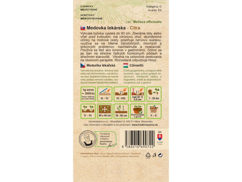 Medovka lekárska Citra - Tradičné osivá starkého JOJA