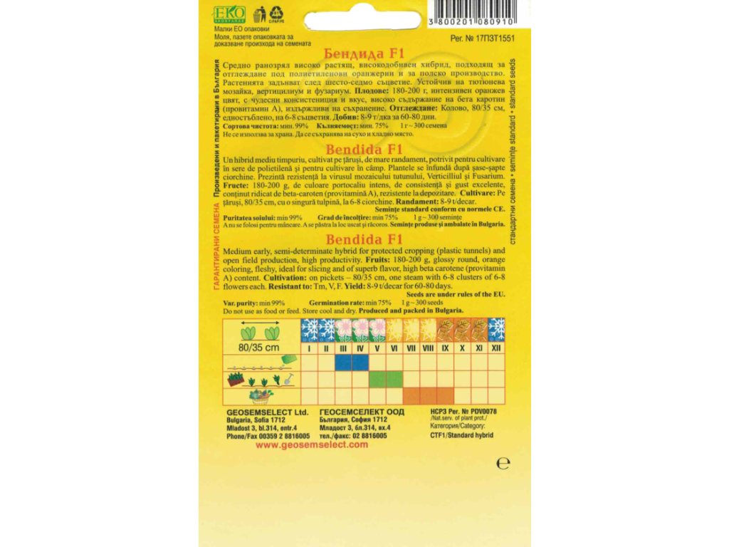 Bendida F1 patrí medzi obľúbené bulharské kolíkové hybridy, ktoré spájajú vysokú úrodu, zdravý porast a skutočne atraktívny vzhľad plodov. Ide o poloskorú, vysokú odrodu určenú na pestovanie vo fóliovníkoch aj priamo na poli. Rastliny tvoria silný, dobre olistený ker s 5–6 veľkými plodmi na strapci, takže pri správnom zaštipovaní a vyväzovaní dokážu dať prekvapivo bohatú úrodu počas celej sezóny.