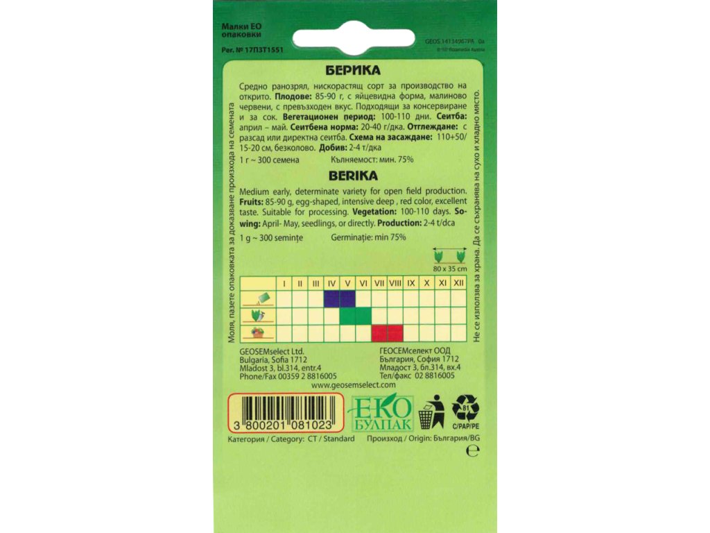 Berika F1 je poloskorá, nízka odroda bulharského rajčiaka určená najmä na poľné pestovanie. Rastliny rastú kompaktne do kríčka, nevyžadujú zložitú oporu ani vylamovanie zálistkov a zároveň dokážu dať prekvapivo bohatú úrodu aj na menšej ploche. Vďaka odolnejšiemu porastu a rovnomernému nasadzovaniu plodov je Berika ideálna voľba pre pestovateľov, ktorí chcú spoľahlivosť, nenáročnosť a veľa úrody naraz.