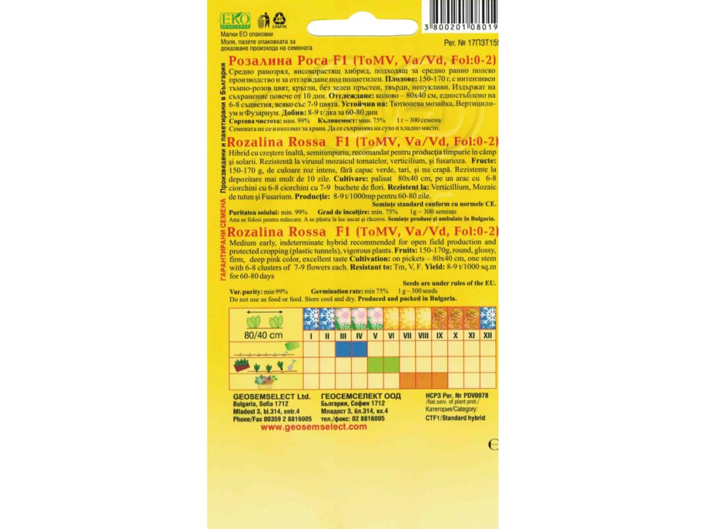 Paradajka Rozalina Rossa F1 patrí medzi poloskoré, vysoké (indeterminantné) bulharské hybridy, ktoré si získali obľubu vďaka luxusne pôsobiacim ružovým plodom a výbornej chuti. Je vhodná na pomerne skoré poľné pestovanie aj do fóliovníkov, kde sa naplno ukáže jej výnosový potenciál – rastliny sa vedú pri kolíkovej opore, ideálne na jeden výhon v spone približne 80 × 35 cm, s tvorbou viacerých strapcov za sezónu.