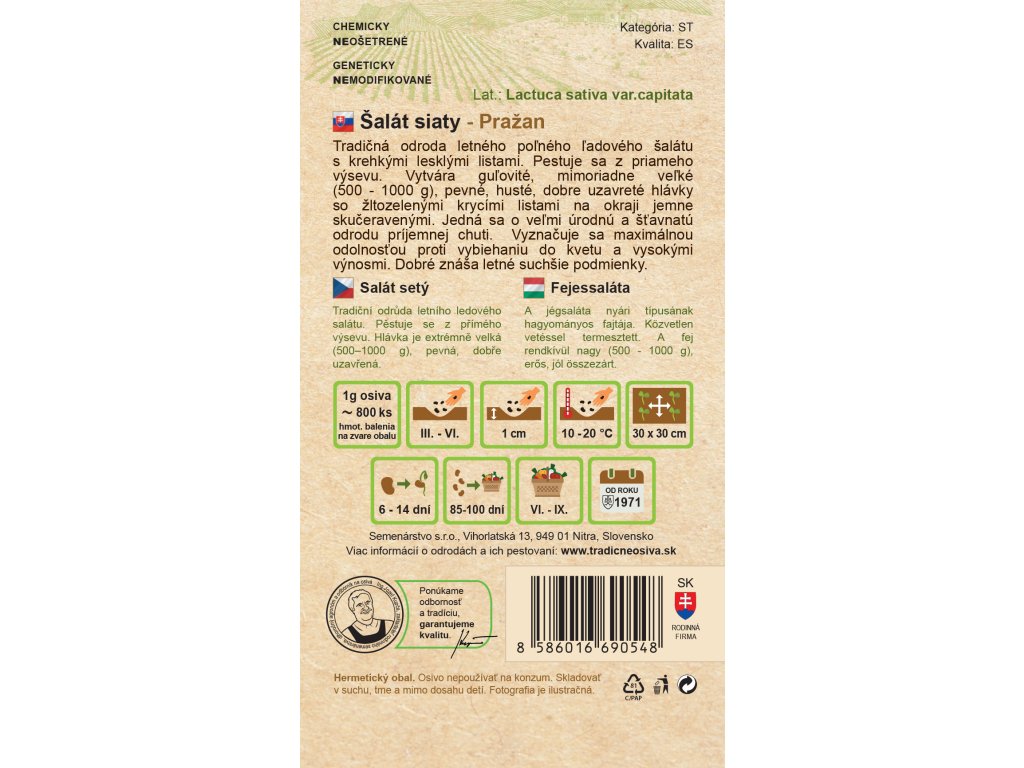 Šalát Pražan - Tradičné osivá starkého JOJA
